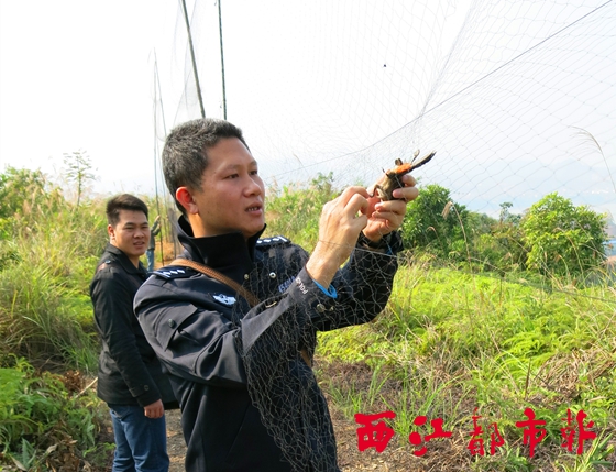 ????18日上午10時,梧州市森林公安干警當即與林業部門聯系,請求支援。隨后,梧州市林政稽查支隊、梧州市野生動物保護站、萬秀區林業局出動20多名執法人員上山清網。