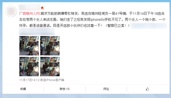 ????店老板招呼客人時,將手機放在了沙發上,客人走了之后,手機也不見了蹤影。近日,在旺城廣場經營服裝店的韓小姐就遇到了這樣的事。事后,她將店內監控錄像中事發當時的截圖發布到網絡上,希望通過網絡“人肉”搜索出“嫌疑人”。對于韓小姐的做法,有律師認為并不妥當。