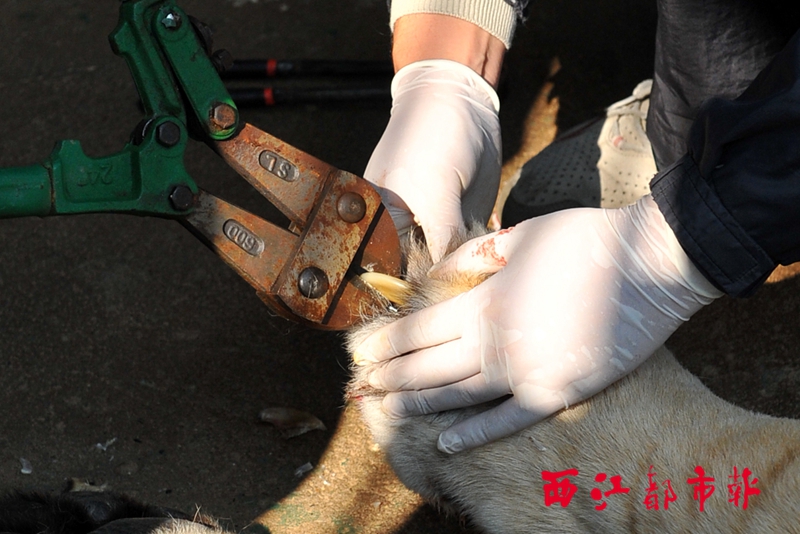 ????為了檢驗“慶慶”的麻醉程度,獸醫檢查了它的眼簾、鼻子等比較敏感的地方。看見“慶慶”依舊一動不動,獸醫宣布,可以開始為它剪指甲了。