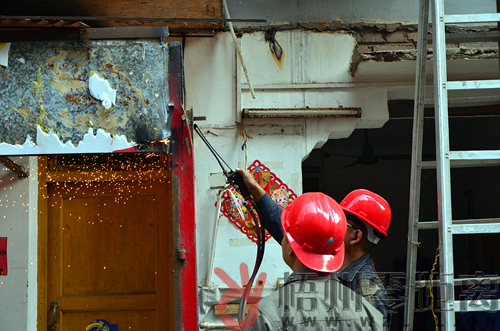 ????今天上午,記者在現場看到,拆除現場拉起了警戒線,一臺挖掘機在場內待命,各作業人員正在有序地對違章搭建的建筑物進行拆除。富江小游園一帶的違章建筑物主要有以鋁板為頂棚的臨時攤位和單層磚混建筑物,這些違章建筑物不僅存在安全隱患,還占用公共地方,既影響了市容環境,也阻礙了游園的正常使用,更妨礙了附近市場的正常發展。萬秀區城市環境綜合整治指揮部副主任張少兵說,這里共有10多家違章搭建經營的攤位,既有臨時搭建的,也有長期搭建的,以售賣雞鴨禽類和經營餐飲為主。