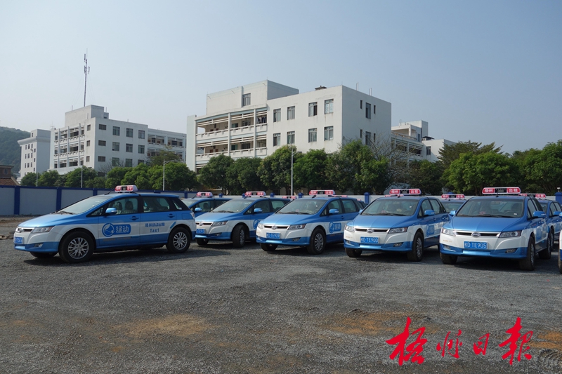 ??? 11月14日,在粵桂合作特別試驗區,數十輛嶄新的純電動出租車整齊地停放在比亞迪運營中心。
