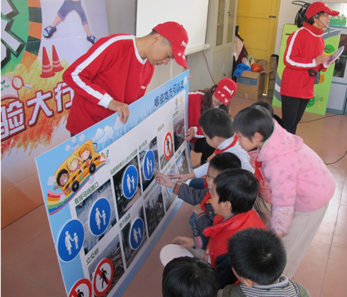 ????在經過簡單而系統的認識信號燈及交通標識學習后,志愿者組織班上的學生展開以搶答游戲的形式來辨認交通標識,進一步加深小朋友們對各個交通標識的認識。“這個是注意危險”、“這個是禁止行人通行”、“這個是人行橫道”……辨認交通標識的搶答游戲在融洽的氣氛中有序地進行著。鐘志林說,雖然這些小朋友們事前已經認識了一些交通標識,但是對他們開展這類型的課堂還是非常必要的,因為有很多看似不起眼卻又很重要的安全要求他們還沒有意識到,比如剛剛問到未滿12歲能不能騎車上馬路時,竟然沒有一個同學能回答。