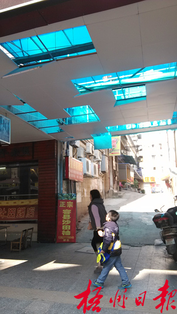 ????據了解,該走廊吊頂因年久失修紛紛脫落,一些頂板搖搖欲墜隨時有可能下墜,而行經該路段的市民游客眾多,附近有商家曾目睹頂板掉下險些砸到路人。市民呼吁有關部門采取措施加緊維修,及早消除安全隱患。祝琳 攝