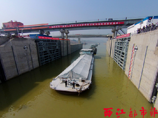 ????西江都市報訊 (記者 黃海志 通訊員 楊德松 實習生 蒙敏瑩) 萬古西江春潮涌,黃金水道喜事連。昨日上午,梧州長洲水利樞紐三線四線船閘建成通航,這不僅標志西江黃金水道的龍頭項目歷經三年多的時間建成后正式投入運行,也標志著長洲水利樞紐成為目前世界上通過能力最大的單級船閘。