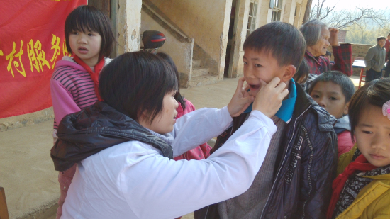 ????留守兒童的健康牽動著遠方家人的心,也受到醫務人員的重視。除了為圩日的群眾提供義診服務,黨員義工們還組織了市婦幼保健院的醫療專家,深入梨埠鎮華映村,為華映村小學近100名貧困學生進行兒童發育營養監測,并建立健康檔案。