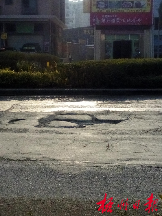 ????據(jù)了解,三龍大道是通往梧高新校區(qū)方向的主要交通干道,過往車輛較多,而且道路兩邊匯集了梧高、梧州職業(yè)學院等學校和新人民醫(yī)院及一些新建的或者在建的樓盤,經(jīng)常有貨車、砂車、小車以及摩托車等車輛經(jīng)過。每到上學和放學的時候,梧高和梧州職業(yè)學院的學生都要經(jīng)過該道路才能回家,不少學生對破損的路面感到無奈。有梧高家長表示,平時接送孩子上下課開車都要很小心,但是三龍大道兩個方向的機動車道路面都出現(xiàn)了破損,坑洼沿路分布,車輛根本避不開,尤其是小車。而且晚上三龍大道的路燈照明情況并不是很好,家長晚上去學校接孩子下課時必須很小心行駛。“熟悉這條道路情況的司機在經(jīng)過時就會小心行駛,但是平時很少經(jīng)過這里的司機并不是很清楚狀況,經(jīng)常會被‘坑’,尤其是一些摩托車。”家在三龍大道附近的李女士告訴記者。