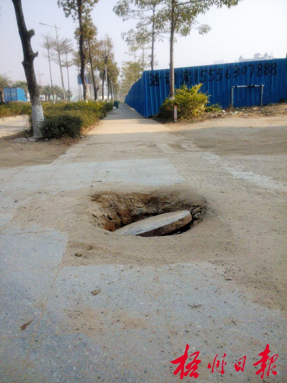 ????除了機動車道坑多,三龍大道的非機動車道和人行道的路面也大坑小坑不斷,有的路段甚至出現(xiàn)了小塌陷。塌陷的路面、地下渠道井蓋的洞口、泥土和磚石隨意堆放的現(xiàn)象導致這里的人行道和非機動車道路面狀況較差,行人往往走一段路要繞過好幾個坑和泥土堆。騎自行車的人也多不走非機動車道,而是騎到機動車道上。