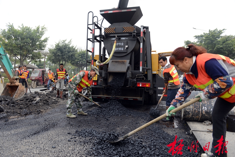 ??? 1月27日,施工人員在西堤路利用新設(shè)備維修路面。 當(dāng)日,梧州市市政工程處投入100多萬元購買的瀝青綜合養(yǎng)護(hù)車等新設(shè)備投入使用,進(jìn)行路面維修。該綜合養(yǎng)護(hù)車具有回收路面瀝青材料再加工功能,可實現(xiàn)資源再生利用。