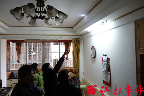 1月30日,梧州市建設(shè)工程質(zhì)量安全監(jiān)督站和云龍社區(qū)居委會(huì)等單位部門的多名工作人員到涉事居民樓內(nèi)查看墻體開裂情況。本報(bào)記者 龍?zhí)靷?攝