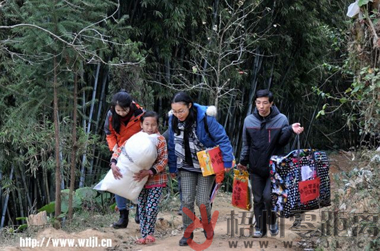 記者一行在路口遇見了程靜惠,她主動幫助搬運物資,但一路不愿說話。直到記者夸獎她:“聽說你這次考試拿到了單科獎,好棒!”她才輕輕地點了點頭,告訴記者,她還是班上的學(xué)習(xí)委員。當(dāng)記者把網(wǎng)友捐贈的全新大熊娃娃送給她時,靜惠害羞地躲在娃娃的背后。到達程家后,記者一行還見到了放寒假回家的大姐程麗惠。當(dāng)了解到程麗惠成績不錯,但寫作很吃力時,同行的熱心市民李小姐拿出隨身攜帶的一本書送給了她,看著包裝雅致的書冊,麗惠臉上露出欣喜的神情。