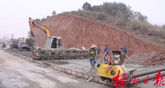 ????當天上午,記者在項目施工現場看到,大型攤鋪機、壓路機等施工機械轟鳴,運輸車輛往來穿梭。“要是再不搶抓進度,就要拖工程的后腿了。”二標段工程負責人易輕松說。據介紹,由于該標段山高、彎急、路寬,山體土方挖掘運輸工程量較大,前段時間工程進度稍落后于其他標段。近日,第三標段工程部抽調人員機械來支援,施工隊加班加點,把落后的進度追了回來,預計可如期完成該標段建設。