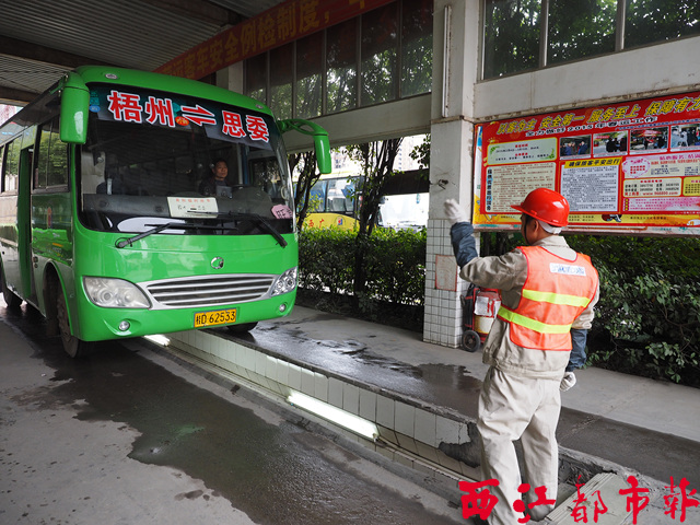 進入春運,金暉汽車客運站對營運客車采取更嚴密的安全例行檢查。 本報記者 何鎏 陳健新/攝