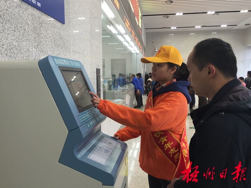 ????“您的是紅色紙質(zhì)車(chē)票,請(qǐng)您到紅色車(chē)票檢票通道檢票進(jìn)站,謝謝?!睘橐龑?dǎo)乘客有序進(jìn)出站,梧州南站安排了十名青年志愿者在車(chē)站進(jìn)站口、出站口等處引導(dǎo)乘客。在售票大廳,也有志愿者幫助乘客使用自動(dòng)售票機(jī)取票購(gòu)票。蒼梧中學(xué)的學(xué)生志愿者盧燕婷說(shuō),引導(dǎo)乘客使用自動(dòng)售票機(jī),可以減輕人工售票口的工作壓力。