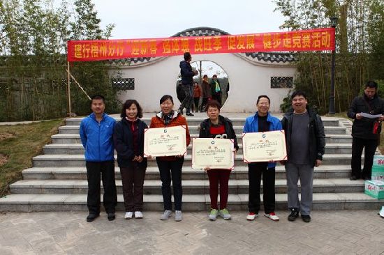 當天上午9時,玫瑰湖公園中的蒙山園內,橫幅屹立,旗幟飄舞,建行梧州分行城區員工集聚在一起,歡聲笑語隨風飄揚……隨著建行梧州分行副行長、工會主席龍潔霄宣布健步走競賽活動開始,17支員工隊伍紛紛上場展開了健步走的角逐。競賽中,各支隊伍充分發揚互幫互助的友愛精神和團隊作戰精神,團結協作、共同完成競賽活動。經過緊張激烈的你追我趕,競賽最終賽出了健步走標兵隊伍一、二、三等獎,以及健步走競賽活動優秀組織獎。比賽結束后,舉行了簡短而熱烈的頒獎儀式,參加健步走競賽活動的建行梧州分行行領導為獲得健步走標兵隊伍與健步走競賽活動優秀組織獎的隊伍和工會小組頒發了榮譽證書。