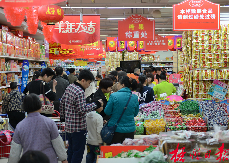 ????2月17日,在南城百貨錦泰店超市,市民正選購年貨。春節(jié)臨近,市區(qū)各大超市均有不少市民購買糖果、餅干等年貨。超市方面也提前備足貨源,滿足群眾消費需求。 李鴻榮 攝
