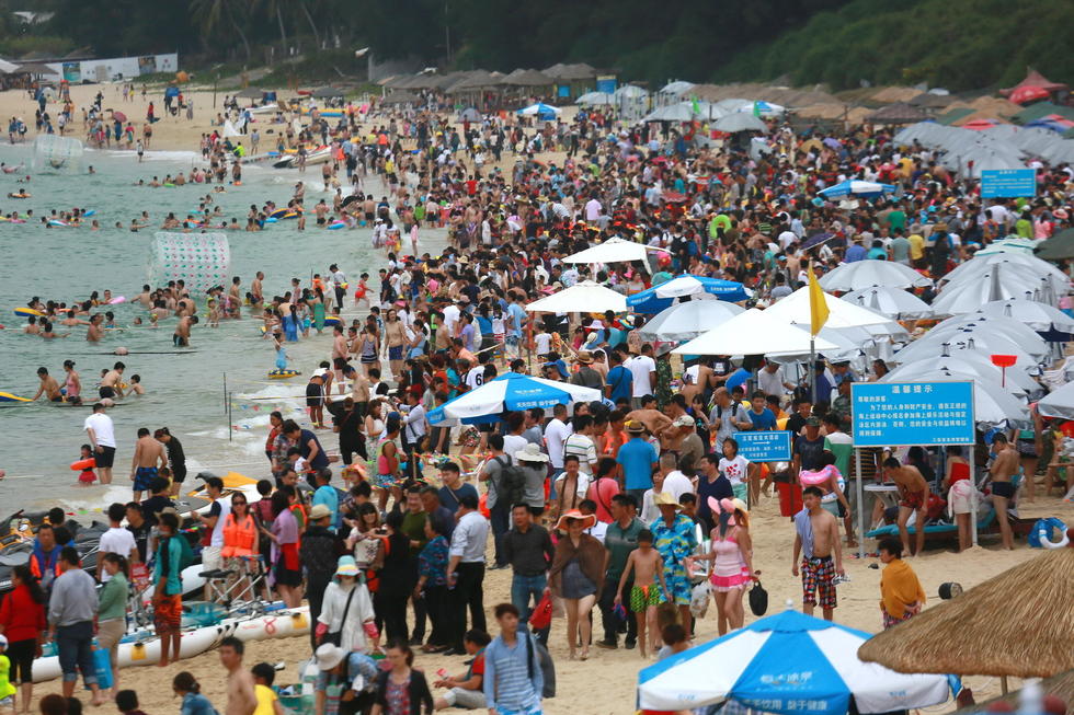 2015年2月22日,三亞,大年初四的亞龍灣國(guó)家旅游度假區(qū),游客爆棚。海灘人頭攢動(dòng),進(jìn)入景區(qū)道路出現(xiàn)了堵塞。上午10時(shí)從三亞市區(qū)驅(qū)車(chē)到約20多公里的亞龍灣,交通堵塞竟要花上2個(gè)小時(shí)。景區(qū)海灘便是人山人海,海上游相當(dāng)火爆。天上有拖傘,海上有水上自行車(chē)、摩托艇、香蕉船,海陸空旅游全線火爆,三亞游進(jìn)入高峰。