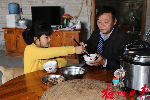 ????隨后,小天雪走進曾外祖父的房間,幫翻身,倒掉尿壺,洗干凈,放回來,洗手,再捧來飯一口一口地喂曾外祖父吃。兩年前,年近90歲的曾外祖父摔了一跤,起不了床,倒尿壺、喂飯、翻身這些活也是小天雪幫著干的。