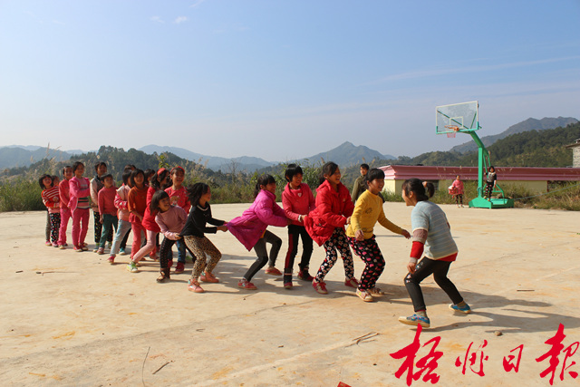 利用課余時間跟同學們玩“老鷹捉小雞”游戲,是吳天雪最開心的時刻。 |