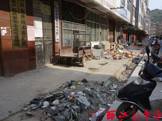 ????此外,埌南鎮鎮區臟亂差現象較明顯。進入該鎮道路兩旁都能看到垃圾,在鎮主要街道之一的新街,各家店鋪前都是隨意丟棄的果皮紙屑、煙花爆竹燃放后的紙屑和建筑垃圾,而且車輛隨意停放。在埌南鎮農業技術推廣站和新區開發辦公室前,大堆建筑垃圾看起來已經堆積多日,市場外有污水橫流的現象。當地一水果攤主介紹,每天都有環衛工人進行清理,但一些居民衛生意識差,隨意拋撒垃圾的現象很多。