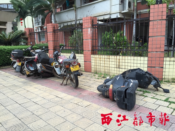 ????昨日中午,記者來到梧桐新苑走訪,發現梧桐新苑小區門前空地停放有不少“僵尸車”,其中,既有摩托車,也有助力車。這些車輛大多歪歪扭扭倒在地上,車身被一層厚厚的灰塵覆蓋,有的車輛破損嚴重,有的車輛輪胎不翼而飛。“希望盡快清理這些長期無人理會的‘僵尸’摩托車,還我們一個良好的市容環境。”在網絡問政平臺上,網友“lizhiye”發出了這樣的呼吁。
