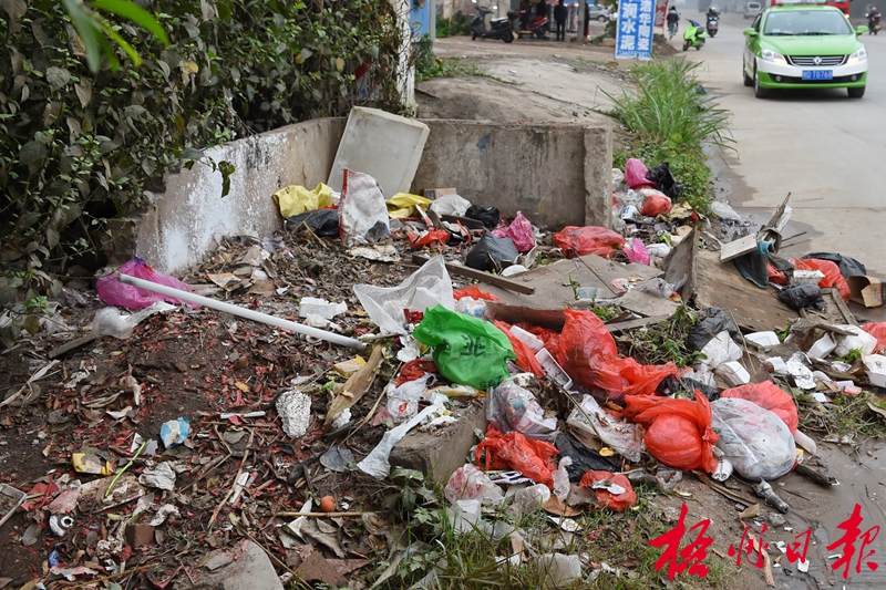 ????當天,萬秀區富民街新民市場內外,流動攤販亂擺賣、隨地拋撒垃圾以及店鋪“門前三包”責任未落實的現象較為明顯。在桂江二橋河西橋頭處本為綠化帶的斜坡,因為無人管護,只剩下了稀疏的綠化植物和眾多的雜草。然而,為了貪圖便利,附近商販對立在一旁的垃圾桶視而不見,紛紛將在銷售過程中產生的塑料袋、食品包裝袋及果皮菜葉等垃圾丟棄在此,逐漸成為衛生死角,影響了市容環境。