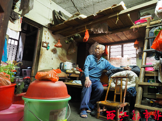 ????黃老伯今年已80歲,是梧州港航集團公司的退休工人。從上個世紀90年代初起,他就與妻子兒女一家四口擠在只有30多平方米的單位宿舍里。雖然現在女兒已經出嫁,但是隨著兒子結婚生子,三代同堂五口人還是擠在一房一廳的居室。這樣的蝸居環境,黃老伯一住就是20多年。由于床鋪不夠,至今家人只能在客廳里鋪床睡覺,而小孫子則只能睡在小閣樓里。