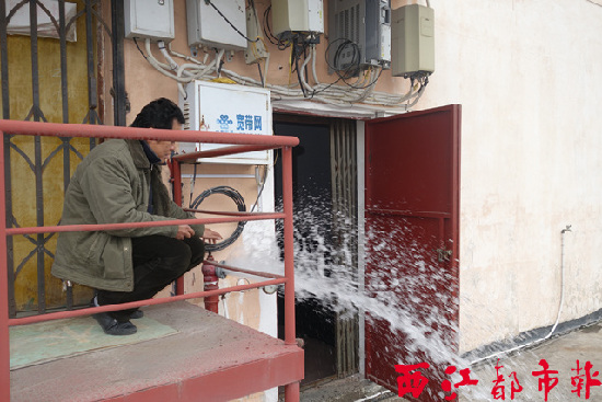 管理人員正在調試太陽廣場頂層整改后的消防管道。 本報記者 龍天傳/攝