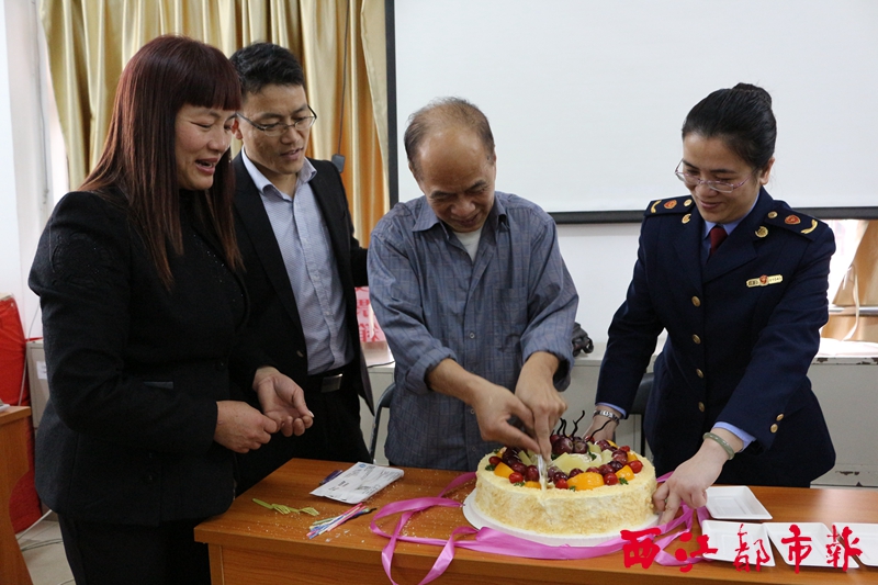 3月16日,社區(qū)和工商部門的工作人員為老黨員慶祝生日。本報(bào)記者 萬立平/攝