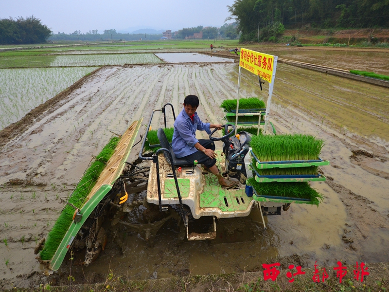 ????“插秧機(jī)每小時(shí)可插秧苗4畝至6畝,是人工插秧作業(yè)效率20倍以上,插秧機(jī)上的秧苗全部來(lái)自育秧工廠。”雋利農(nóng)機(jī)專業(yè)合作社負(fù)責(zé)人蒙偉雄表示,春耕期間,合作社共接到400多畝育秧、插秧的訂單。