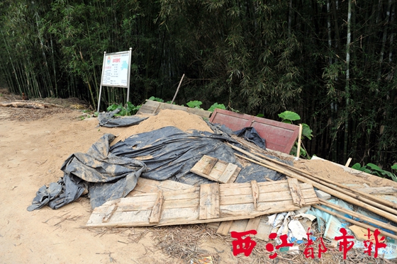 ?堆放在蒼梧縣木雙鎮(zhèn)雙賢村村道邊的建筑垃圾已堆放多日,一直無(wú)人清理。 孟亞西/攝