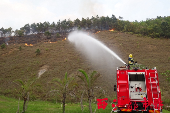 ????西江都市報訊(記者 龍天傳 通訊員 雷開偉 楊發華)4月2日15時左右,梧州市龍湖鎮新民村一處山體發生火災。期間,大火曾向梧州學院后山方向蔓延,情況十分緊急。對此,梧州市公安消防支隊先后調動5個消防中隊、16輛消防車共99名消防員參與救援。同時,森林消防部門也派出80名消防員,聯合過百名當地干部群眾對山火進行撲救。當天18時,山體明火已被撲滅。據梧州市森林防火指揮部通報稱,此次過火面積約20畝,起火原因是由于個別群眾上墳燒鞭炮所致。
