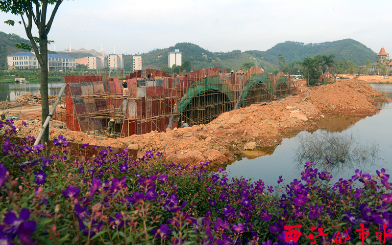 ????4月2日,施工人員對玫瑰湖通向湖心島的天使橋進(jìn)行施工。目前,玫瑰湖湖心島景觀提升工程正加緊進(jìn)行,長約80米的天使橋預(yù)計(jì)于本月中旬完成橋體建設(shè)。 記者 蒙紹松/攝