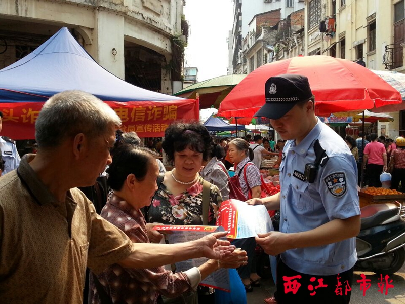 ??? 4月4日上午,萬秀區(qū)公安分局刑偵二大隊(duì)民警走進(jìn)萬壽宮菜市和大東菜市,向市民傳授預(yù)防街頭詐騙和電信詐騙知識(shí)。