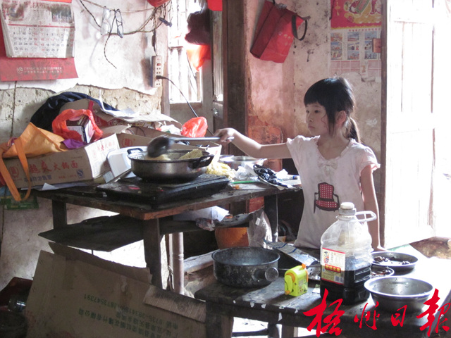 ????每天早上6點,她早早便起床煮粥,喂完家中的母親后,帶著4歲的弟弟來到衛生院,給父親與弟弟喂完早餐后才趕去上學,年幼的弟弟則留在醫院,陪在父親身邊。中午一下課,她得趕回家,做好午飯喂好母親,再拿到醫院給父親、弟弟。到了晚上,依然是張羅一家四口晚飯的忙碌,晚上還得帶著弟弟在醫院陪伴父親過夜。一天下來,四口人的飲食、起居都得靠年紀輕輕的她張羅。