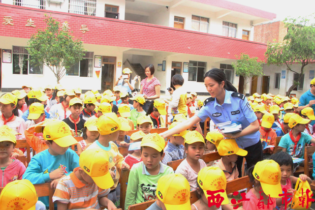 ????5月5日上午,藤縣公安局連同該縣教育局、婦聯等部門,在藤州鎮麗新村小學開展“中小學生安全手冊”和“安全小黃帽”進校園活動,并為該校師生上了一堂生動活潑的法制教育課。