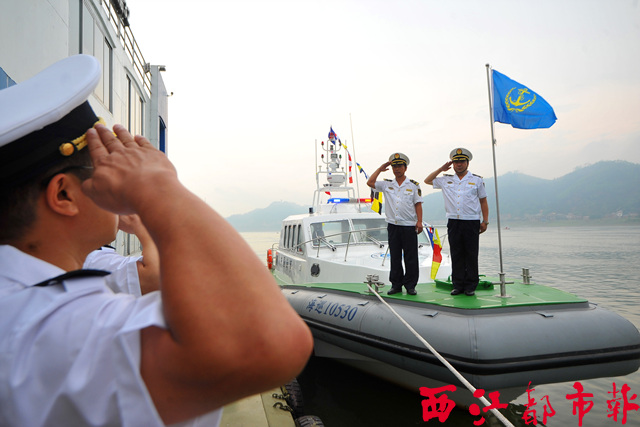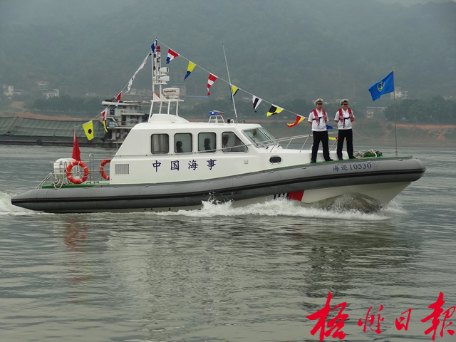 ????5月6日,剛?cè)肓形嘀莺J戮帧昂Q?0530”高海況巡邏艇首次升旗啟航。當(dāng)日,梧州海事局新裝備的12米高海況巡邏艇“海巡10530”正式入列參與執(zhí)法工作。