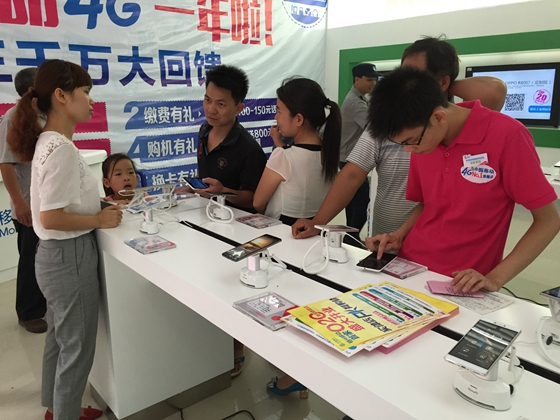 梧州移動首家手機網購O2O體驗店開業當天,不少市民前往該體驗店體驗購機新方式