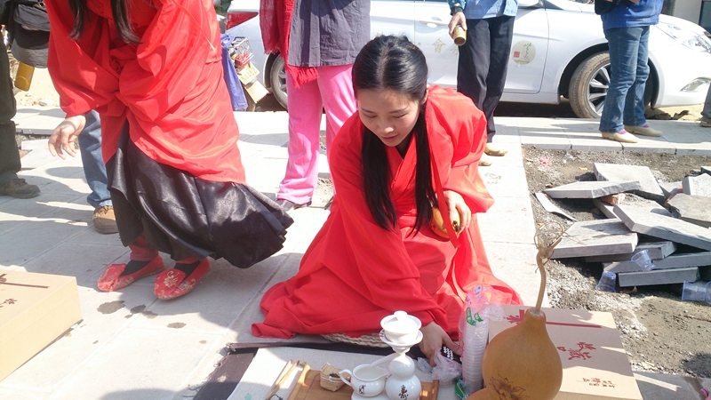 這項(xiàng)茶事活動(dòng)參與者身穿漢服,以茶傳言。