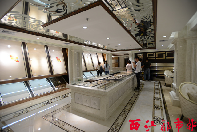 5月20日,在佛山東鵬潔具股份有限公司產品展覽中心,顧客正參觀、選購瓷磚。 記者 李鴻榮/攝