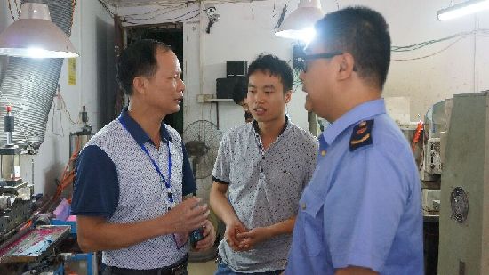 ????6月2日,在新興二路興安小區(qū)某寶石加工作坊,工作人員耐心向加工戶講解辦理設(shè)備要求。
