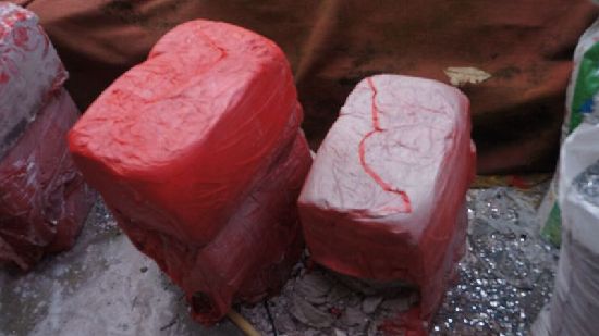 ????寶石加工所產(chǎn)生的廢渣已凝結(jié)成塊。據(jù)工作人員介紹,該廢渣難溶于水,排到下水道后會堵塞下水道。