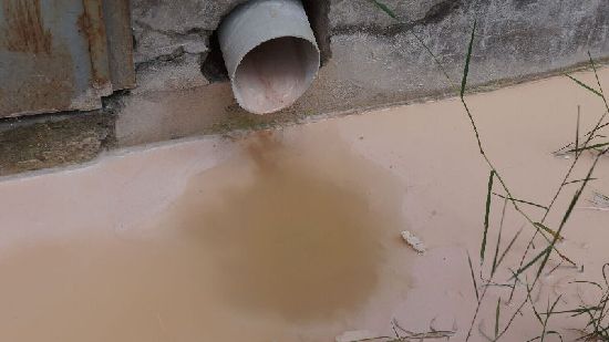 ????6月2日,記者在新聞路383號寶石園小區(qū)門口斜坡底看到的寶石加工排污管,寶石加工污水經(jīng)排水管直接排到地面明渠。