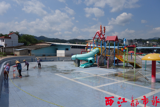 ????5月29日上午,荔枝大坡新農村已經烈日高照,但并沒有擋住村民劉愛平出門的腳步。她頭戴草帽、手持掃把,來到村口處新建的陽光農業生態園,在那里,她和另外幾位村民一起清洗生態園中的游泳池,為當天下午迎客做好準備。