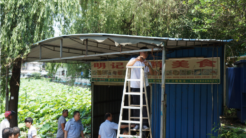 ????記者從萬秀區(qū)政府了解到,今年4月份起,萬秀區(qū)城市管理局就多次與市政園林管理局、東興股份合作聯(lián)社山地一隊股份合作社的主要負責(zé)人溝通協(xié)調(diào),并于5月初形成整治共識。5月6日、5月8日區(qū)城監(jiān)大隊先后對潘塘公園荷花池旁明記等10家攤檔發(fā)放了《廣西壯族自治區(qū)梧州市萬秀區(qū)城市管理局限期整改通知書》,要求經(jīng)營業(yè)主在規(guī)定期限內(nèi)完成自行拆除整改工作。