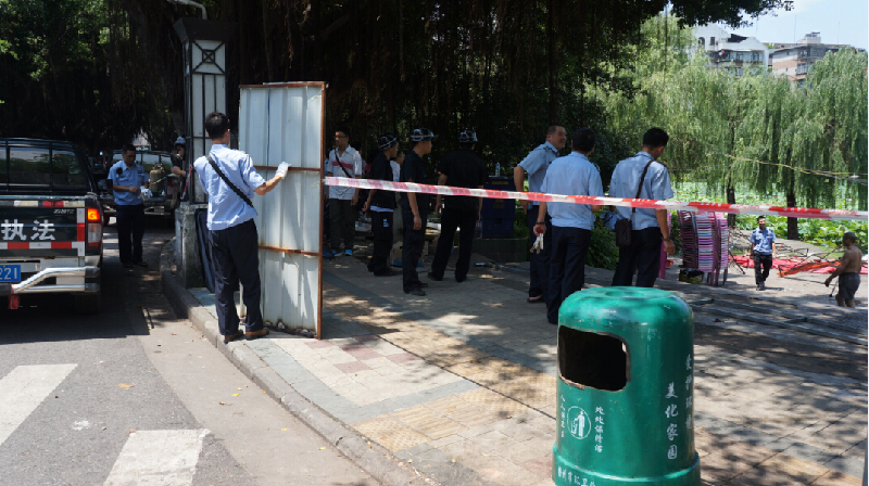 ????截至今日下午17時,違章搭蓋的攤檔大部分已經(jīng)被拆除,根據(jù)現(xiàn)場執(zhí)法人員預(yù)計,明日可全面完成拆除工作,并清理現(xiàn)場遺留垃圾,荷花池周邊的風(fēng)貌得以還原。