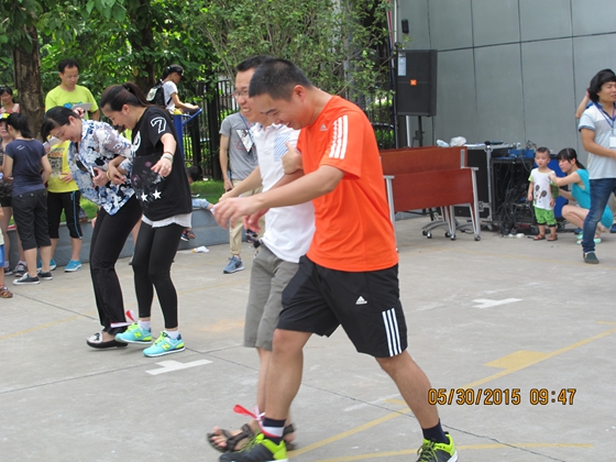 員工趣味運動會上,員工參與“兩人三足”興趣高。