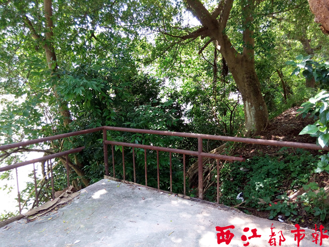 ????隨后,記者沿著鴛江路往富民方向走,看到位于桂江游泳場上方的欄桿也有幾處遭到損毀。有兩根鐵管缺失,其中一處僅僅用竹子充當(dāng)臨時欄桿。據(jù)記者觀察,位于水上泳場上方約有五處欄桿已經(jīng)不同程度損毀。