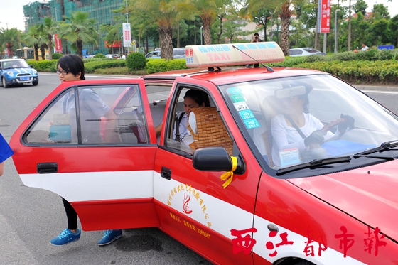 ?6月7日,考生乘坐愛心送考車輛到達梧州高中考點。 何鎏/攝????