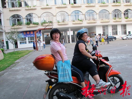 6月8日下午,考完高考的蘇榆潔搭上媽媽的摩托車回家。