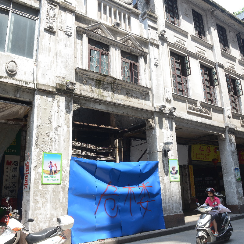 6月10日,市民從大中路一危房旁邊經過。